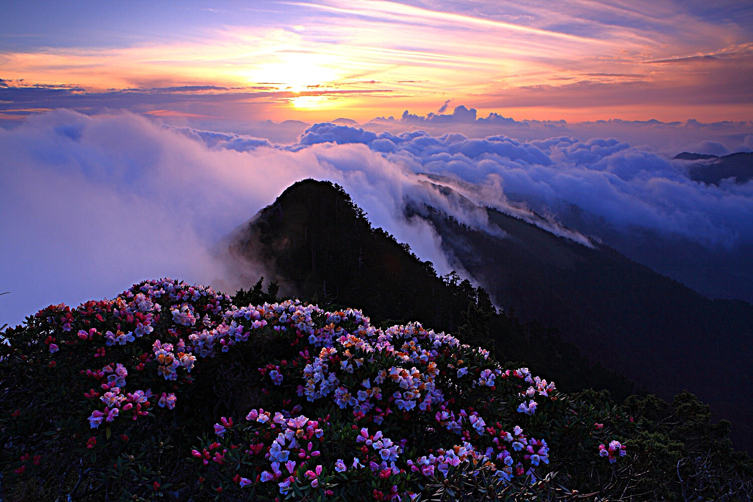 合歡山主峰,高達3416公尺,位處花蓮縣與南投縣的交界,為大甲溪、濁水溪與立霧溪的分水嶺,屬於冷溫帶氣候,平均溫度攝氏12~18度左右。